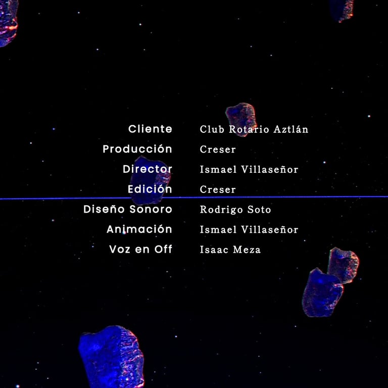 CLIENTE CLUB ROTARIO AZTLÁN | PRODUCTOR EMMA ALCANTARA | CO PRODUCCIÓN CRESER | DIRECTOR ISMAEL VILLASEÑOR | EDICIÓN CRESER | MÚSICA Y SONIDO RODRIGO SOTO | ANIMACIÓN ISMAEL VILLASEÑOR | VOZ EN OFF ISAAC MEZA